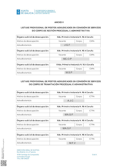 Saíu publicada a Resolución da Dirección Xeral de Xustiza pola que se publican as adxudicacións provisionais de postos de traballo entre persoal funcionario dos corpos e escalas ao servizo da Administración de xustiza convocados pola Resolución do 8 de marzo de 2024.